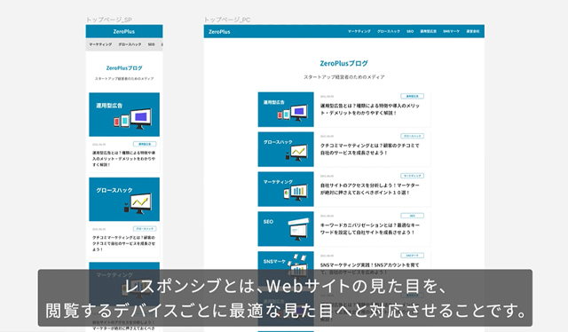 HTML・CSSでのコーディングテクニックと、どんなデバイスでも美しく表示させるレスポンシブデザインを学習。