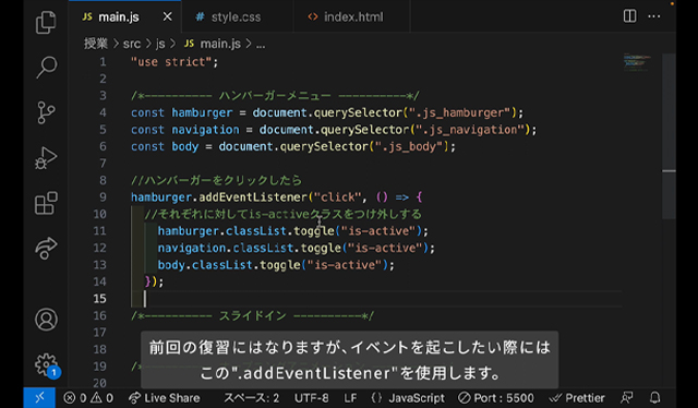 時間やユーザーの行動により、Webページを変化させる、動きのあるWebサイト制作テクニックを学習。