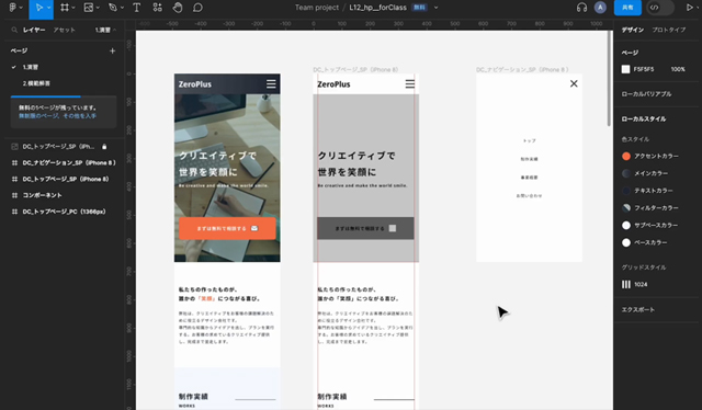 ページを構成する要素を配置した、Webサイトの設計図づくりや、クライアントに確認する為の、デザイン見本の作成を学びます。