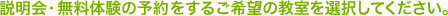 下記の一覧・地図からご希望の教室を選択の上、「説明会・無料体験」フォームよりご予約ください。