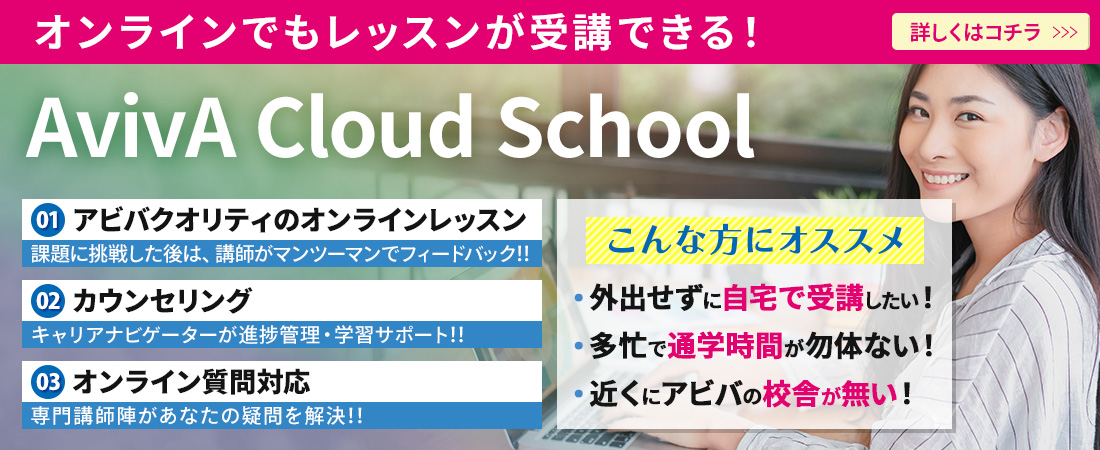 スキルの習得や、その先にある目標実現のためには「学習を続けること」が不可欠です。アビバは全国50校以上の校舎を展開しており、近くの校舎で学習いただけることも「通いやすいから続けやすい」ポイントですが、あなたと二人三脚でスキルアップ・キャリアアップを目指すキャリアナビゲーターの存在も欠かせません。