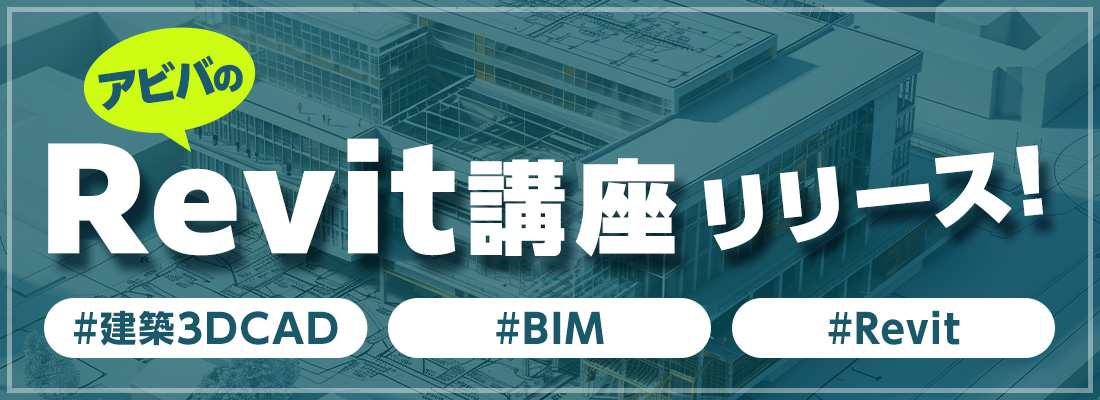 アビバの建築3DCAD(Revit)コースでは、 BIMソフトのトップシェア、「Revit」を用いてBIM操作を1on1で習得できる点が特徴です。大手建設会社などを中心に、 BIMエンジニアの需要が高まる中で、実践力が身につき、キャリアアップや転職に有利な学びを得られるコースです。