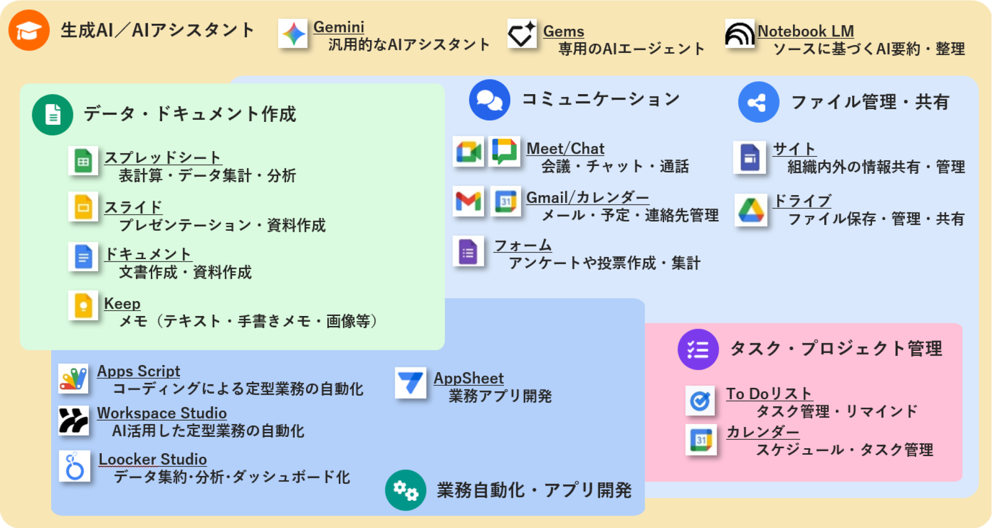Google Workspace講座で学べるアプリラインナップ