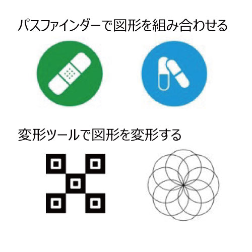 入門パックでは、illustratorの根幹となる機能のペンツールの基本や、直線や曲線を組み合わせたイラスト描画、図形の変形、パスファインダーでの図形の組み合わせなど、Illustratorの基礎を学習します。
