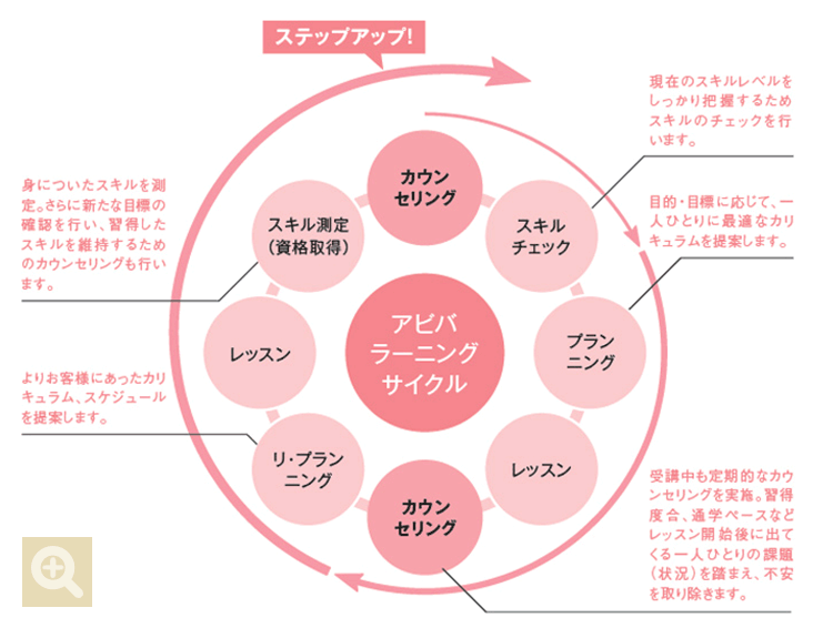 またアビバの講師は全員、厳しい研修をクリアーした選りすぐりの専任スタッフ。臨時講師はおらず、質の高いサービスを約束します。